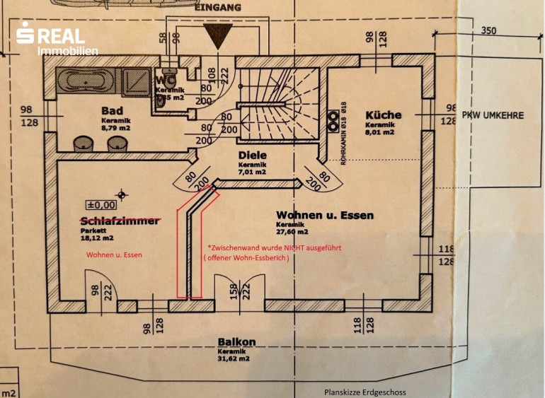 Fliesen, Parkett, Einbauküche, Südbalkon, Carport