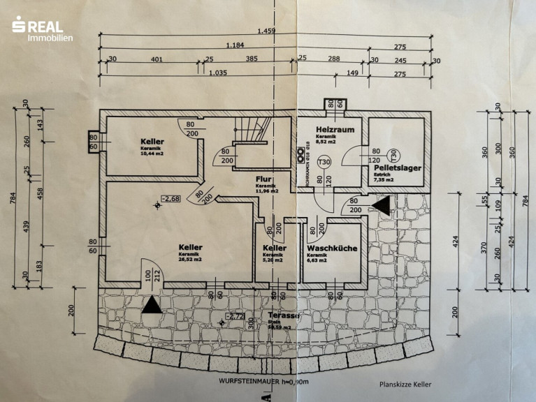 KG: Flur, Abstellraum, 4 Kellerräume, Heizraum und Pelletslager, Zugang zum großzügigen Garten