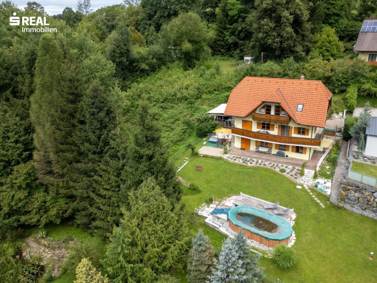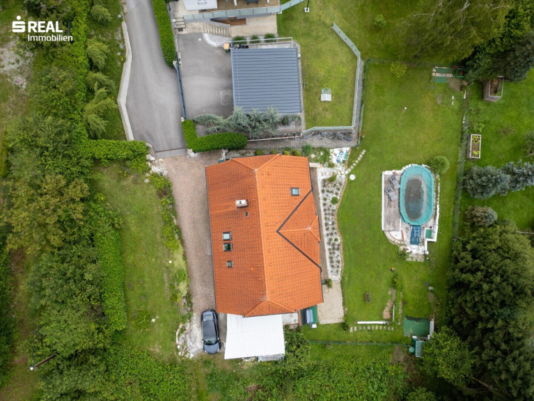 Das Wohnhaus ist voll unterkellert und bietet auch vom Kellergeschoss aus einen ebenerdigen Zugang zum südlichen Teil des Grundstückes. Die Außenanlage weist ebenfalls einen gepflegten Zustand auf. Am Grundstück befinden sich auch ein Pool und eine Gartenhütte. (Für einen gepflegten Rasen sorgt ein komfortabler Mähroboter.)Das Grundstück weist eine Fläche von 1.149 m² auf und ist nach Südosten ausgerichtet. So genießen Sie Sonne von morgens bis abends, ob auf den Balkonen oder im Garten. Die gute Raumaufteilung bietet einer Familie auf zwei Wohnebenen ausreichend Platz.