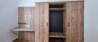 Die Möbel sind in edlen Holzdekoren wie Silberfichte und Basalt gehalten und verbinden Stil mit Funktionalität. In den Schlafzimmern erwarten Sie komfortable Doppel-Boxspringbetten mit ergonomischen Matratzen, stimmungsvoller LED-Hintergrundbeleuchtung und eleganten Nachtkonsolen. Die Wohn- und Essbereiche beeindrucken durch moderne Sitzmöbel, darunter ein Ausziehsofa, hochwertige Sessel und eine gepolsterte Sitzbank mit wasserabweisendem Bezug. Ergänzt wird die Einrichtung durch Hängeregale mit integrierten Schreibtischen und Induktions-Ladestationen. In den Badezimmern finden Sie edle Waschtischhängeschränke und beleuchtete Spiegel, die für ein luxuriöses Ambiente sorgen.