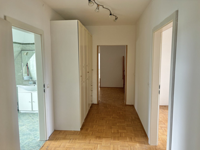 Vorraum - Flur - Küche/Esszimmer - Wohnzimmer ( Balkon ) - 2 x Zimmer - Bad ( Badewanne ) - WC - Hackschnitzel Zentralheizung - Abstellraum