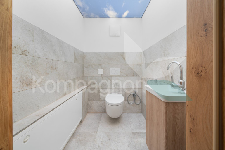 - separates Gäste WC im erfrischendem und hochwertigem Stil (alle Toiletten sind spülrandlose Dusch-WCs mit Bewegungssensor)