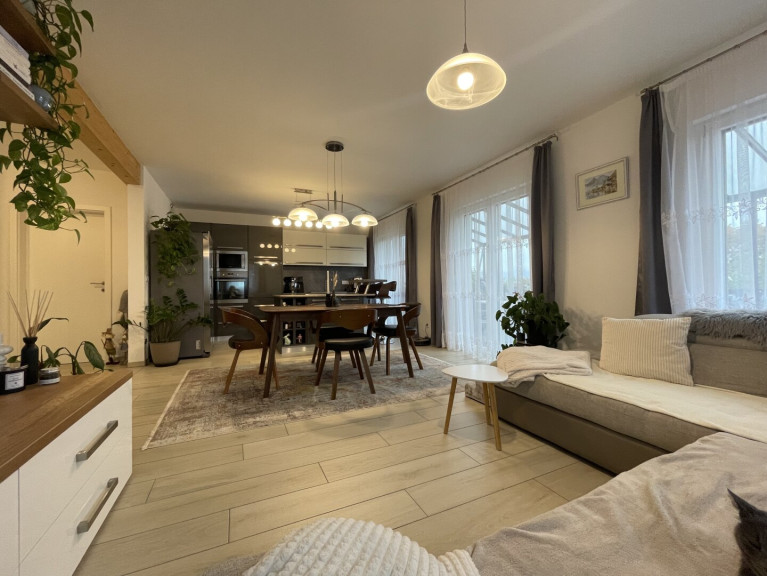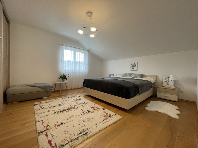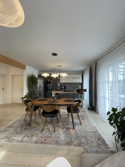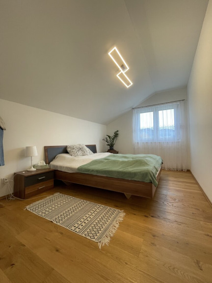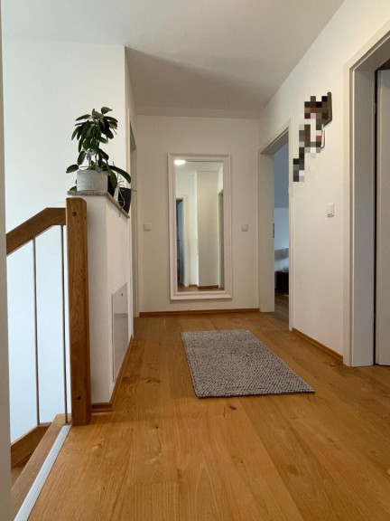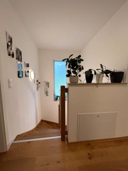 Das gesamte Haus ist mit einer Luftwärmepumpe und einer Fußbodenheizung ausgestattet und sorgt somit für ein behagliches Wohnklima. Helle, hochwertige Materialien wie Parkettböden und Fliesen verleihen dem Objekt eine stilvolle Atmosphäre. Die Fenster sind mit Außenjalousien ausgestattet, die sowohl für Lichtschutz als auch für zusätzlichen Komfort sorgen.