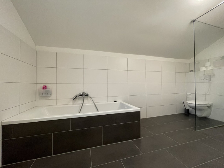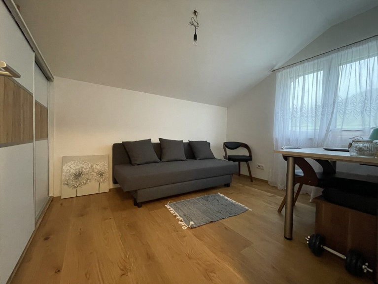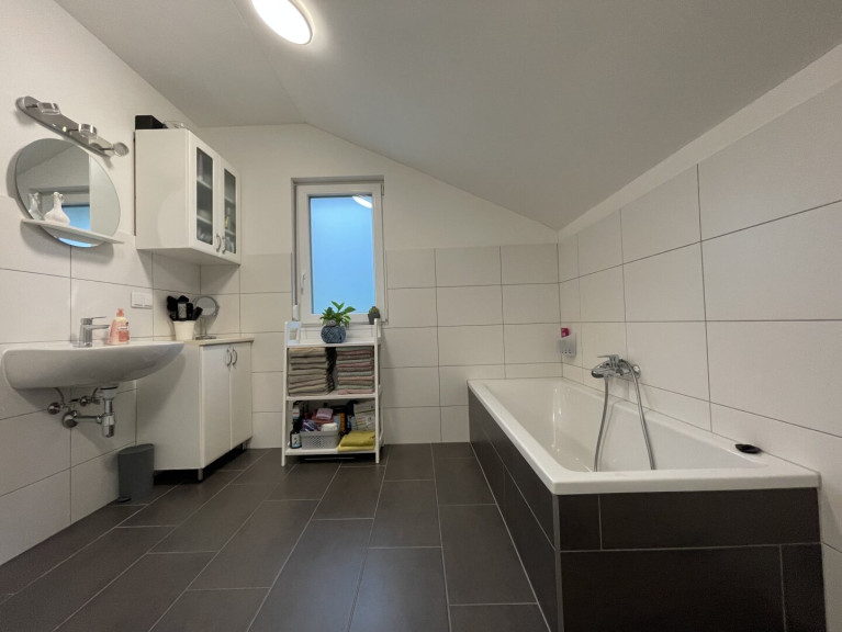 Im Obergeschoss finden Sie drei lichtdurchflutete Zimmer, die Ihnen zahlreiche Gestaltungsmöglichkeiten bieten. Das familiengerechte Badezimmer ist mit einer Badewanne, Dusche und WC ausgestattet und verfügt ebenfalls über ein Fenster, das für eine angenehme Belüftung sorgt.