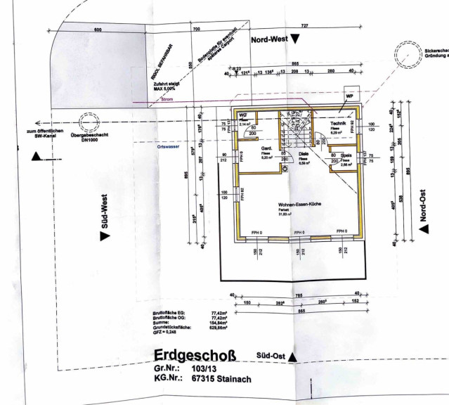 Der großzügige Wohn-Ess-Küchenbereich bildet das Herzstück des Erdgeschosses und ermöglicht direkten Zugang zur großen, süd-westseitig überdachten Terrasse – ein herrlicher Ort, um die Sonne und den Ausblick zu genießen. Das Erdgeschoss umfasst eine praktische Speis, ein WC mit Fenster, eine Garderobe sowie einen Technikraum mit integrierter Waschküche.