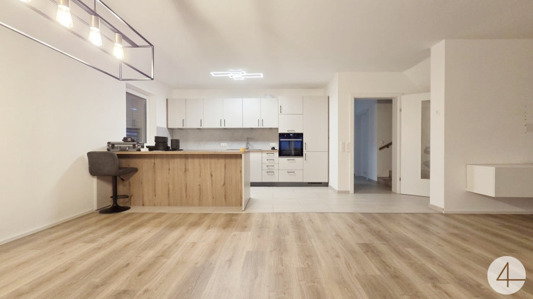 Beim Betreten des Hauses eröffnet sich ein lichtdurchfluteter Wohn- und Essbereich mit offener Küche. Dieser zentrale Treffpunkt lädt zu gemeinsamen Stunden mit Familie und Freunden ein. Große Fensterfronten sorgen für ein helles und freundliches Ambiente. Von hier aus gelangen Sie direkt auf die großzügige Sonnenterrasse und in den liebevoll gestalteten Garten – der perfekte Ort für entspannte Stunden im Grünen.