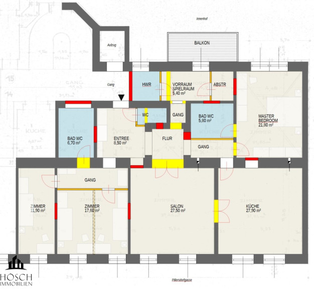 Der Grundriss bietet zahlreiche Möglichkeiten – ob als elegante Familienwohnung, großzügiges Stadtrefugium oder repräsentativer Wohnsitz. Ein neu geschaffener Balkon mit ca. 8 m² erweitert den Wohnraum um einen wertvollen Freiluftbereich.