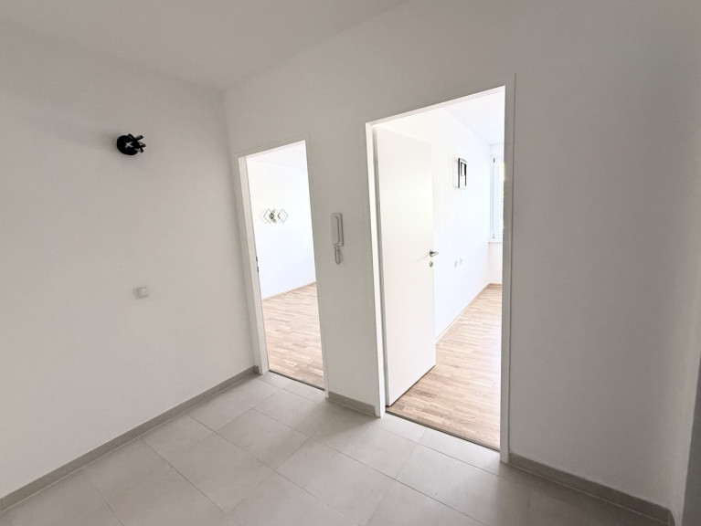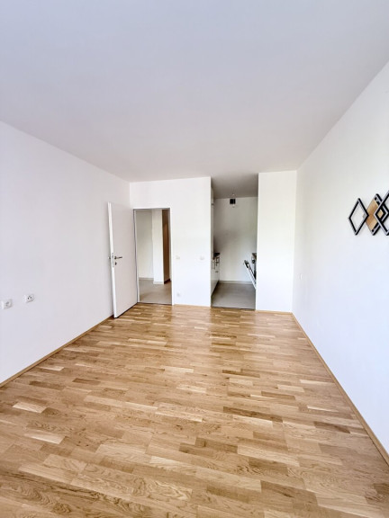 Es handelt sich um eine moderne Wohnung mit einem kompakten Grundriss.