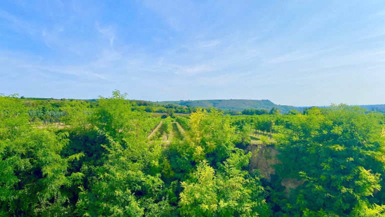 Die Wohnungen sind umgeben von Grünflächen und Weingärten.