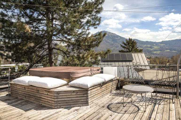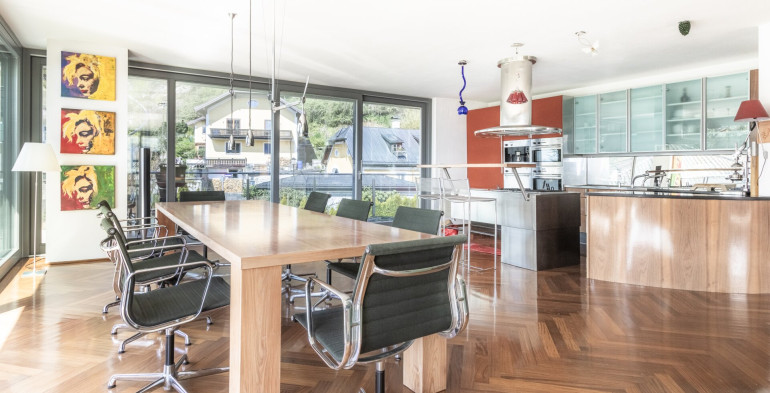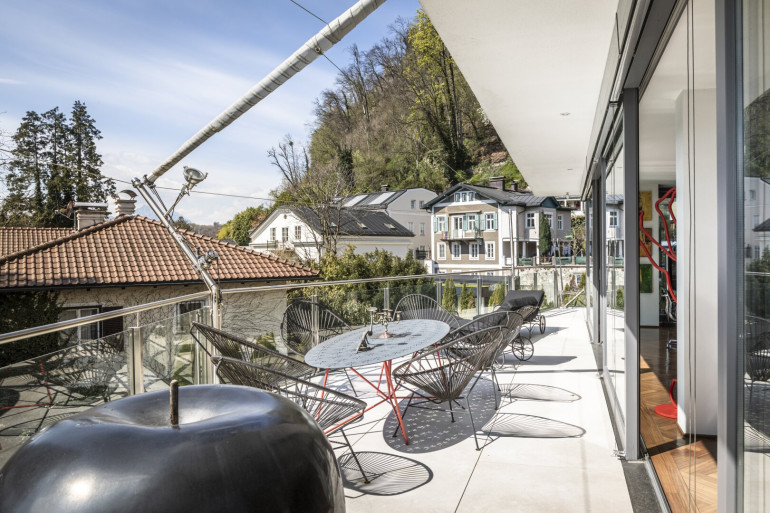 Dieses exklusive Penthouse besticht durch edle Ausstattung und eine traumhafte Panoramaterrasse. Hier residieren Sie nur einen Katzensprung von der Salzburger Altstadt entfernt, die ruhige, privilegierte Lage garantiert Ihnen gleichzeitig ein Maximum an Privatsphäre. Stilvolles Design, hochwertige Möbel, maßgefertigte Schränke und außergewöhnliche Kunstobjekte schaffen ein luxuriöses Ambiente, das Seinesgleichen sucht.