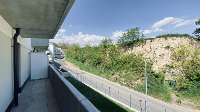 Die Wohnungen sind umgeben von Grünflächen und Weingärten.