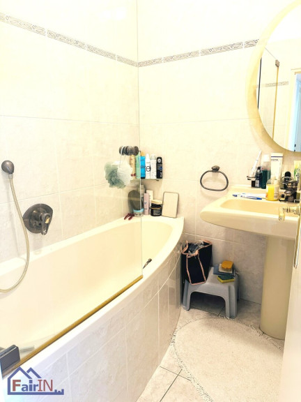 Das Badezimmer ist mit einer Badewanne ausgestattet und lädt zum entspannenden Baden ein. Die hochwertigen Armaturen und die geschmackvolle Gestaltung sorgen für ein modernes und zeitgemäßes Ambiente.