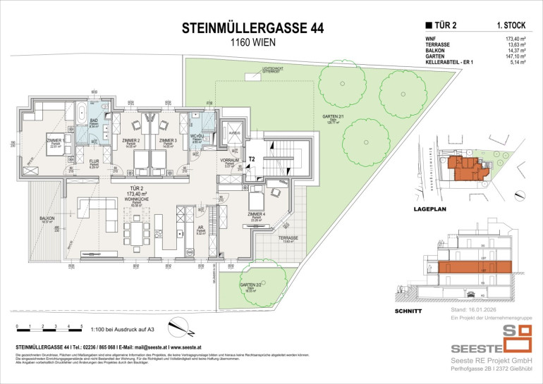 Die gut durchdachten Grundrisse der geplanten vier großzügigen Wohnungen weisen eine Wohnfläche zwischen etwa 131m² bis 177m² auf und verfügen alle über großzügige Garten- oder Terrassenflächen.