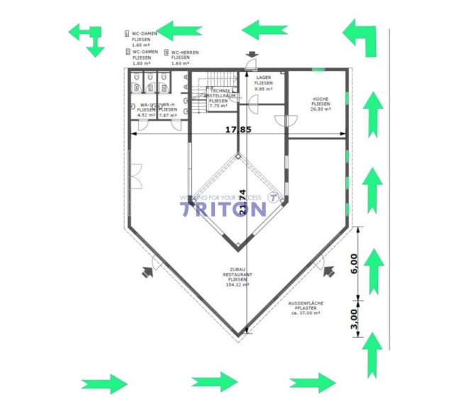 Ein weiterer Standortvorteil sind die zahlreichen Parkmöglichkeiten direkt vor dem Objekt, die sowohl Kunden als auch Mitarbeitern einen hohen Komfort bieten. Ergänzend steht eine ca. 37 m² große Freifläche zur Verfügung, die flexibel genutzt werden kann – etwa als Outdoor-Bereich, Trainingsfläche oder Pausenzone.