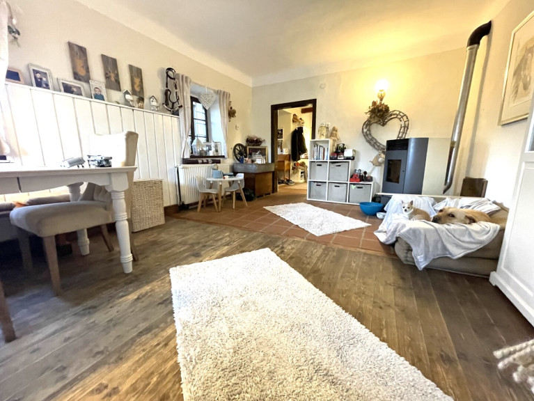 Das wunderschöne Landhaus besteht aus 4 Schlafzimmern, 2 Badezimmern, 3 Toiletten - wobei eine Toilette über eine weitere Dusche verfügt. Herz des Hauses ist der wunderschöne Wohnsalon mit altem Holzofen. Das gemütliche Esszimmer schließt direkt an die Küche an und verfügt über eine praktische Pelletheizung. Die Küche im Landhausstil, ist mit modernen Geräten ausgestattet und bietet viel Platz um für Ihre Lieben zu kochen. Im Haus gibt es 4 Möglichkeiten eine Ofen anzuschließen, wobei aktuell 2 angeschlossen sind. Im Esszimmer gibt es einen Pelletofen und im Wohnzimmer einen antiken Holzofen. Weiters bietet das Haus eine gemütliche Einliegerwohnung, die sowohl durch einen separaten Hauseingang sowie durch das Haus zu betreten ist. Im Innbereich des Hauses ist ein authentischer toskanischer Terrakotta Boden verlegt, dieser verleiht einen ganz besonderen Urlaubsflair. Die Bäder und Toiletten sind modern saniert und es gibt einen großzügigen Abstellraum mit Waschküche.