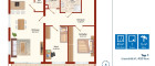 Die Wohnungen sind sowohl über eine geradläufige Treppe als auch über einen Aufzug erreichbar. Im Untergeschoss finden Sie Gemeinschaftsräume wie Wasch-, Trocken-, Kinderwagen- und Heizraum, Kellerabteile und Fahrradabstellplätze. In der Außenanlage stehen 16 Freiparkplätze zur Verfügung, zusätzlich zu den 33 Parkplätzen in der Tiefgarage.
