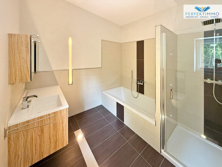 Das Haus befindet sich in einem sehr guten Zustand und bietet alles, was man sich von einem modernen Zuhause erwarten kann. Beide Wohneinheiten sind mit einer Fußbodenheizung ausgestattet, die über eine energieeffiziente Erdwärmeheizung betrieben wird. Dank der Tiefenbohrung wird hier ein nachhaltiges Heizsystem genutzt, das nicht nur die Umwelt schont, sondern auch langfristig Energiekosten spart. Eine zentrale Wohnraumlüftung sorgt zudem für ein angenehmes Raumklima in allen Bereichen des Hauses. Weitere technische Highlights sind die zentrale Staubsaugeranlage, dreifach verglaste Fenster mit elektrischer Beschattung sowie stilvolle Fliesenböden, teils in edler Holzoptik.