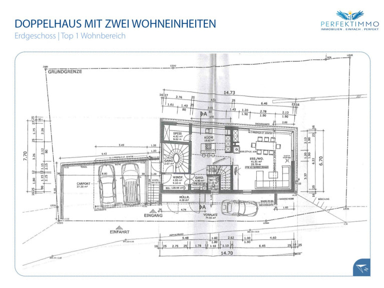 Der Außenbereich bietet neben den großzügigen Grünflächen auch praktische Parkmöglichkeiten. Auf dem eigenen Parkdeck stehen fünf Abstellplätze zur Verfügung, sodass für jede Wohneinheit ausreichend Stellfläche vorhanden ist. Ob für Ihre Familie oder Gäste, der Parkplatzmangel gehört hier der Vergangenheit an.