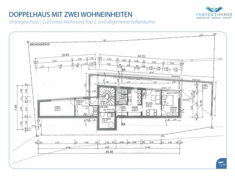 Die kleinere Einheit, Top 2, befindet sich im Untergeschoss und bietet auf ca. 49,94 m² Wohnfläche eine kompakte, aber gut durchdachte Raumaufteilung. Über den separaten Eingang gelangen Sie in eine Garderobe, von der aus das Bad und die Küche zugänglich sind. Durch die Küche gelangen Sie ins Wohn- und Esszimmer und dieses führt ins Schlafzimmer. Highlight dieser Wohneinheit ist der direkte Zugang zum Garten, der mit einer großzügigen Terrasse und einer Rasenfläche von insgesamt ca. 48,15 m² zu erholsamen Stunden im Freien einlädt.