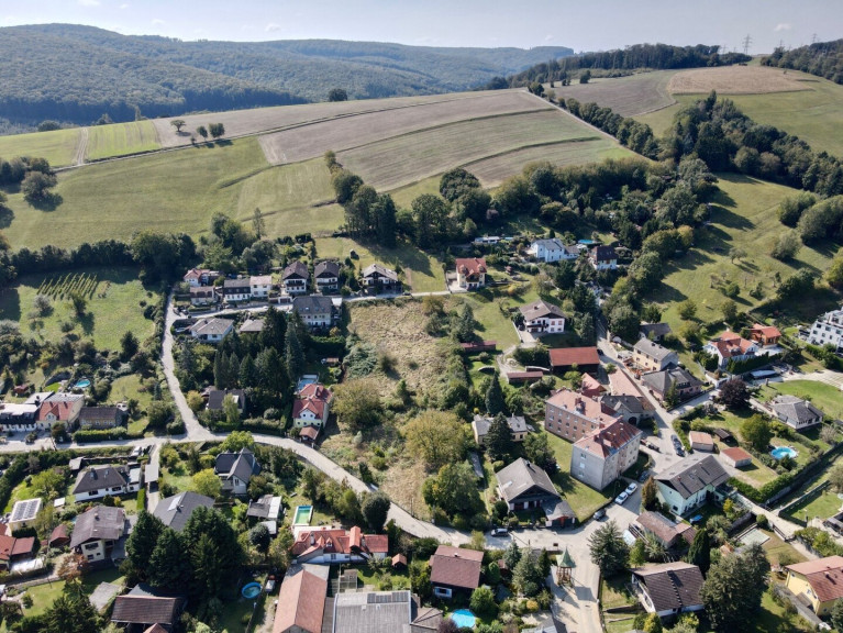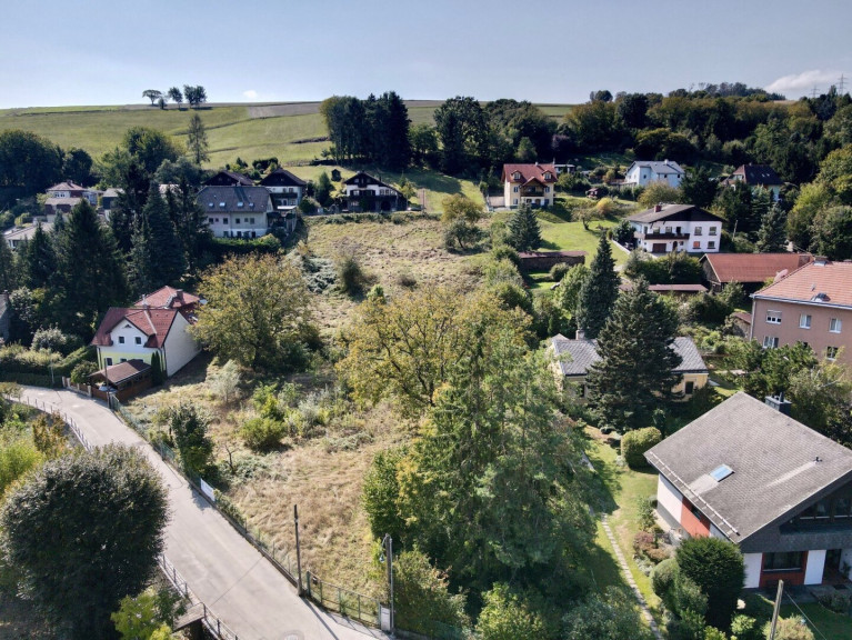 Vom Grundstück hat man einen herrlichen Weit- und Grünblick, die Kirche rundet den Ausblick ab. Durch die leichte Hanglage ergeben sich 3 ideal bebaubare Plateaus mit eigenen Zufahrten