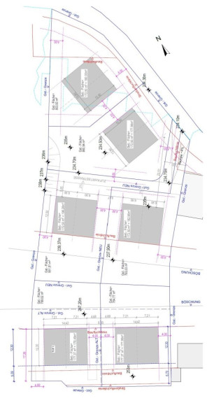 Die Liegenschaft wurde in 6 Grundstücke (á ca. 800m²) geteilt und ein Projekt mit 6 Doppelhäusern zu insgesamt 12 Einheiten und einer Nutzfläche von 2.233,15m² wurde baubehördlich bewilligt. Es liegen sämtliche Planungen, Genehmigungen (Wasserrecht, etc.) sowie ein rechtskräftiger Baubescheid bis Jänner 2025 vor.