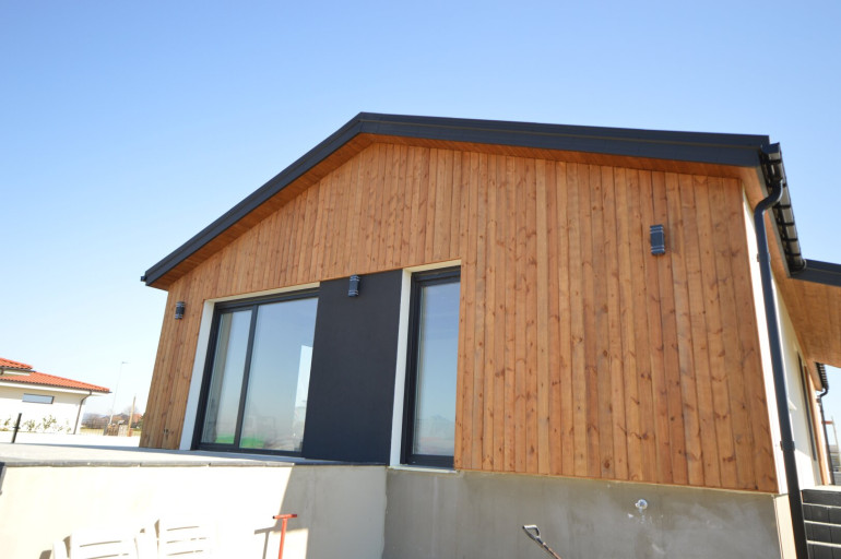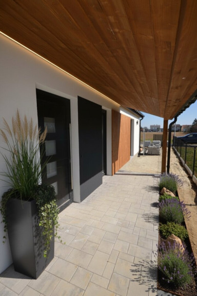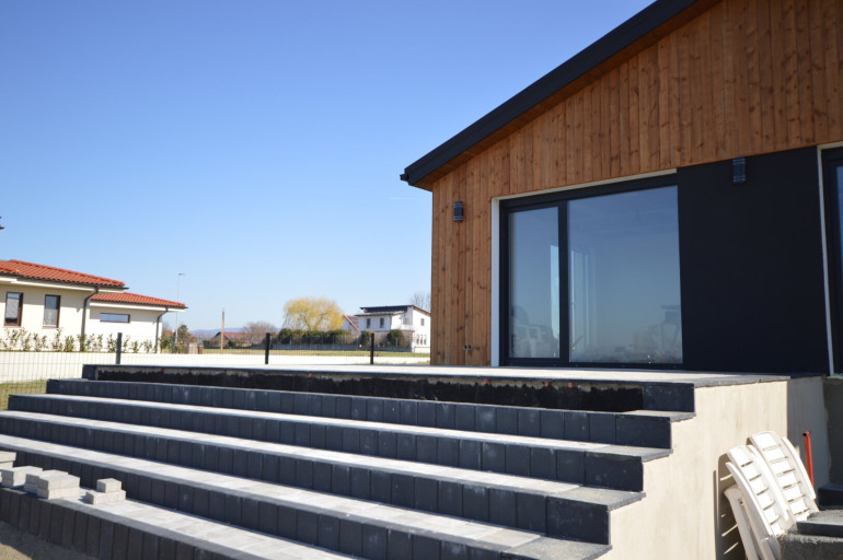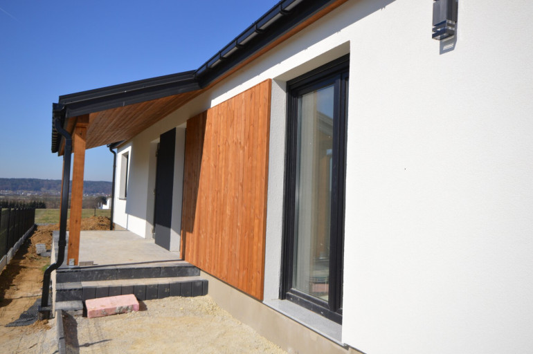 Auf einer großzügigen Fläche von 116m² erstreckt sich dieses Haus mit 5 geräumigen Zimmern - große Wohnküche, Schlafzimmer mit Schrankraum und 3 Kinderzimmer - genügend Platz für Ihre Familie und Gäste. Die moderne Architektur des Hauses ist ein echter Hingucker und fügt sich perfekt in die idyllische Umgebung ein. Die 45m² große Terrasse lädt zum Entspannen und Genießen der Sonne ein und bietet einen wunderschönen Blick auf die umliegende Landschaft. Hier können Sie mit Ihren Liebsten gemütliche Grillabende verbringen oder einfach nur die Ruhe und Natur genießen.