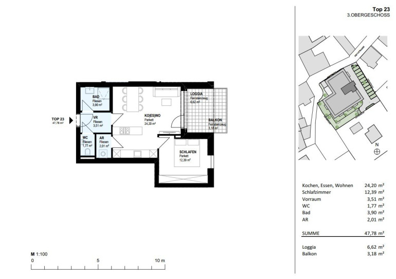Terrassenwohnung Top 23 / 3. Obergeschoss (3.OG)