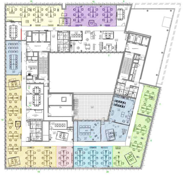 Dank der durchgehend verglasten Gebäudeflügel auf beiden Seiten und einem flexiblen Ausbauraster von nur 1,25 m bieten die Büroflächen im ViE maximale Effizienz und nahezu unbegrenzte Flexibilität bei der Umsetzung eines maßgeschneiderten Bürokonzepts für Ihr Unternehmen. Kühlbalken mit Frischluftzufuhr, Bodendosen in jeder zweiten Achse, eine leistungsstarke Belüftungsanlage mit Wärmerückgewinnung sowie ein windunabhängiger integrierter Sonnenschutz garantieren eine optimale Anpassungsfähigkeit und ein angenehmes Raumklima.