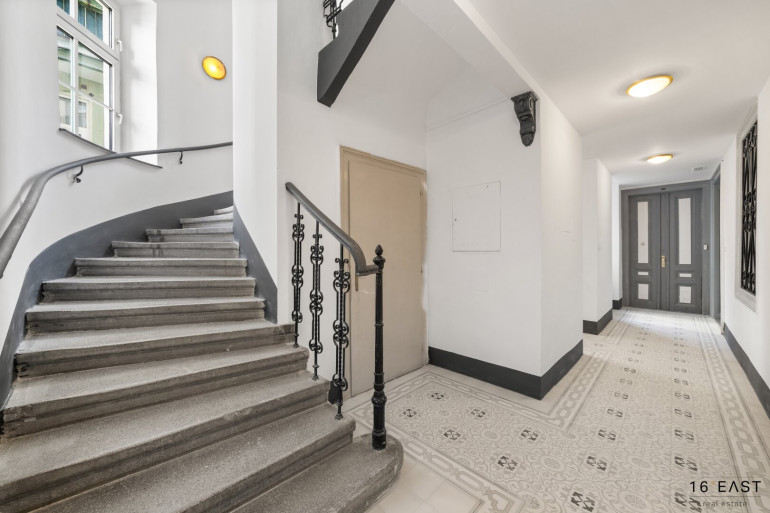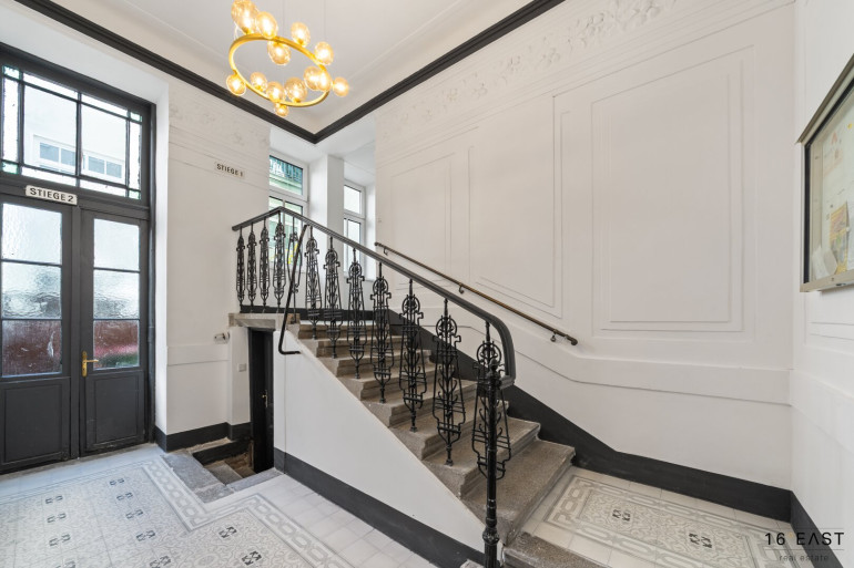 Die Liegenschaft vereint eine attraktive Lage mit dem besonderen Flair eines liebevoll renovierten Altbauhauses. Der Eingangsbereich wurde sorgfältig restauriert und verbindet klassische Details, wie schmiedeeiserne Geländer, harmonisch mit moderner Beleuchtung. Das stilvolle Stiegenhaus mit massivem Holzgeländer und originalen Stufen vermittelt ein elegantes, zeitloses Ambiente und unterstreicht den besonderen Charakter des Hauses.