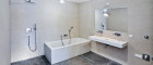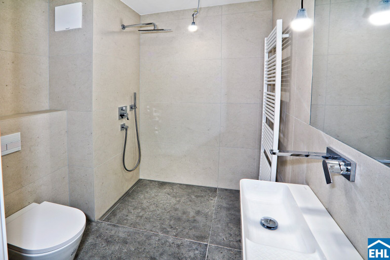 - Elegantes Feinsteinzeug in den Bädern
