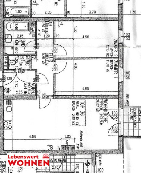 Zur unbefristeten Vermietung gelangt diese 3-Zimmer-Wohnung mit Balkon in der Grabecgasse 1 Top 30 (Eingang: Ing. Ritzingerstrasse 1)