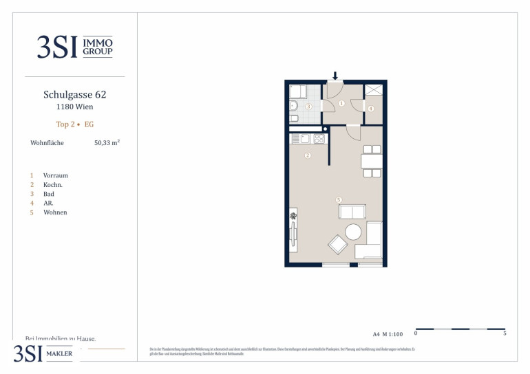 Zum Verkauf gelangt eine perfekt aufgeteilte Single-Wohnung in einem gepflegten Neubau in Top-Lage des 18. Bezirks. Diese Wohneinheit überzeugt mit einem durchdachten Grundriss und Helligkeit. Sie verfügt über ca. 50 m² Wohnfläche und teilt sich wie folgt auf: