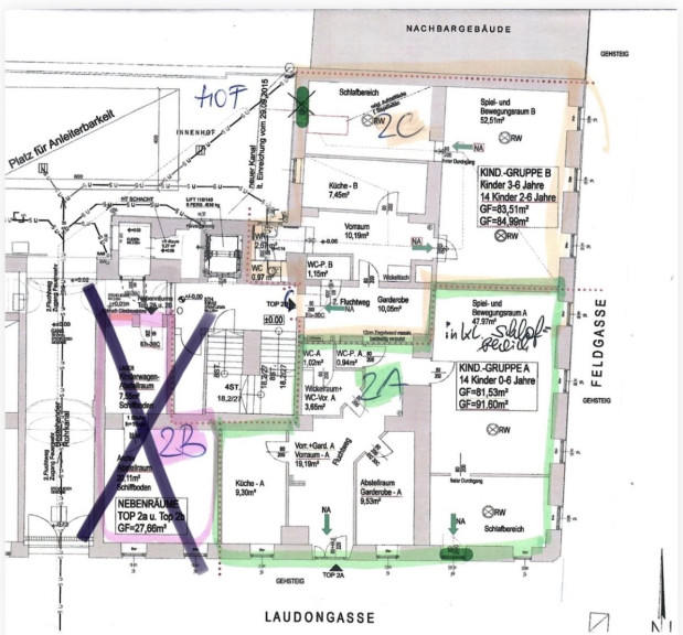 - Am Plan ist die Fläche 2a mit ca. 92 m² grün markiert dargestellt.