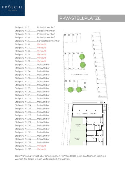 - Einen PKW-Stellplatz im Freien. Preis pro Abstellplatz beträgt € 9.500