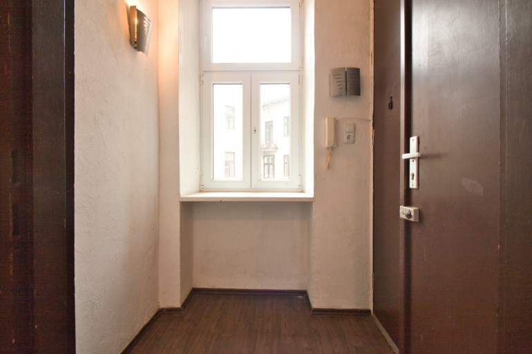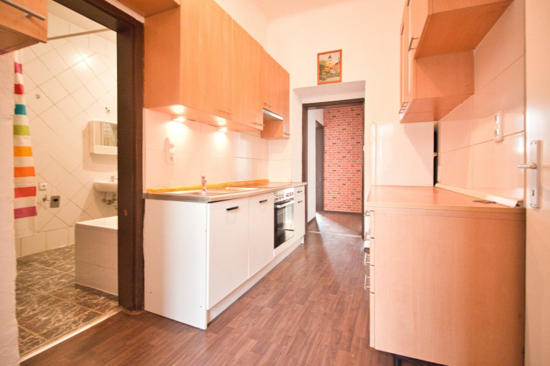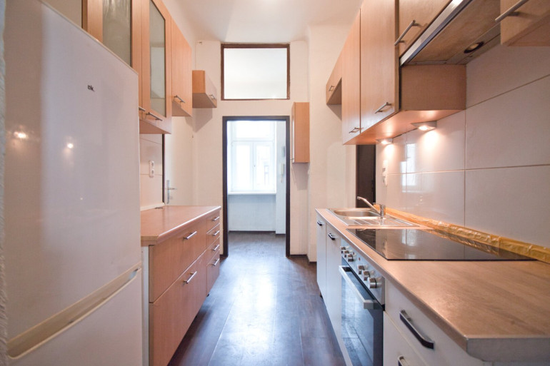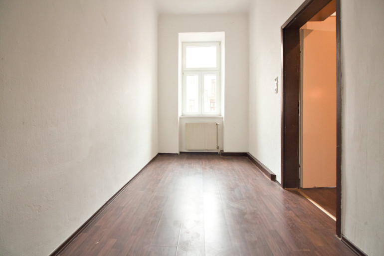 Die Wohnung befindet sich im 2. Stock ohne Lift. Durch einen kleinen Vorraum mit Fenster in den Innenhof gelangt man in die Küche. Linkerhand befindet sich das großzügige Badezimmer mit Badewanne und Dusche sowie ein davon separiertes WC mit Fenster. Rechterhand betreten wir das Kabinett, welches in den ruhigen Innenhof orientiert ist.