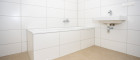 Fliesen, Parkett, Fernwärme, Fußbodenheizung, Wohnküche / offene Küche, Personenaufzug, Badewanne, Tiefgarage, Wasch/Trockenraum