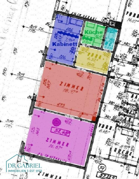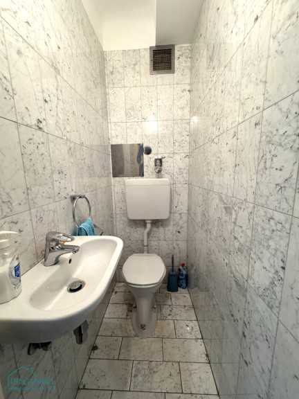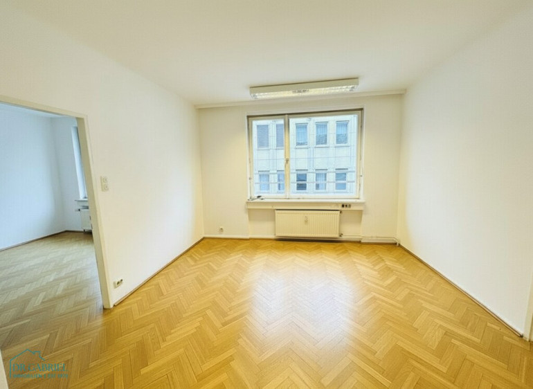 - Derzeit: Vorraum, kleine Küche, WC, drei Büroräume