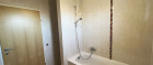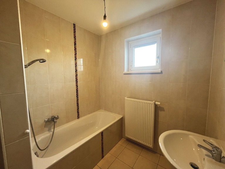 Badezimmer und WC sind getrennt und modern verfliest. Das Badezimmer ist mit einer Badewanne, einem Handwaschbecken sowie einem Waschmaschinenanschluss ausgestattet – ein Ort der Entspannung nach einem langen Tag.