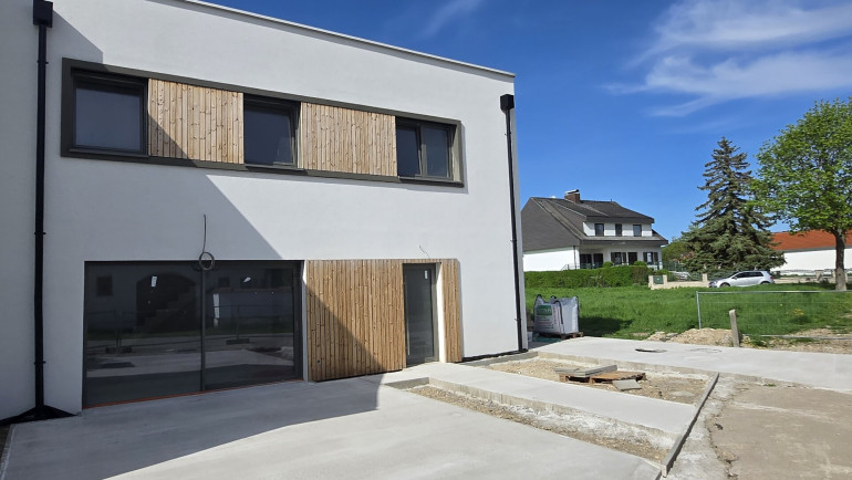 Die Doppelhaushälfte wurde 2022-2024 gebaut undbefindet sich in ruhiger Wohnlage am Rande von Stetten.