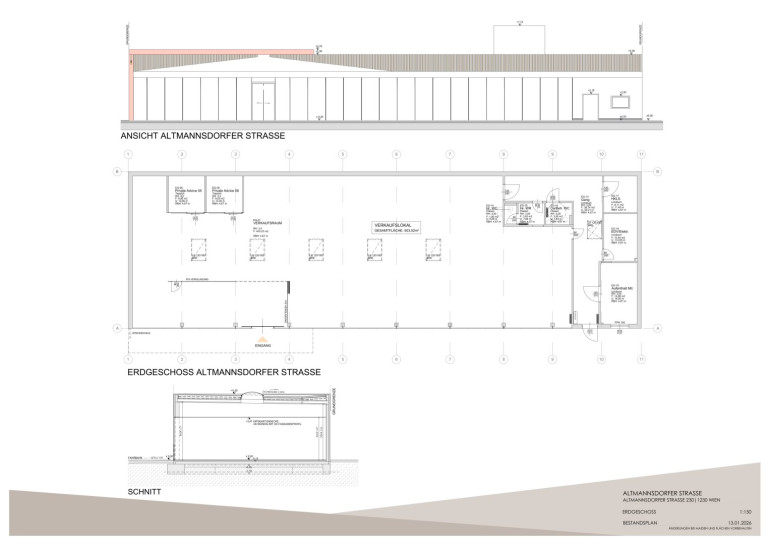 Das Geschäftslokal umfasst eine Gesamtnutzfläche von ca. 500 m², inkl. Lager, Personalraum und WCs.