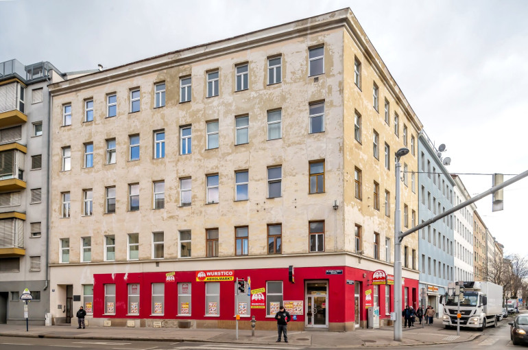 Die Wohnung befindet sich im 1. Stock eines Altbaus ohne Lift. Das Gebäude spiegelt den Charme klassischer Wiener Altbauten wider.