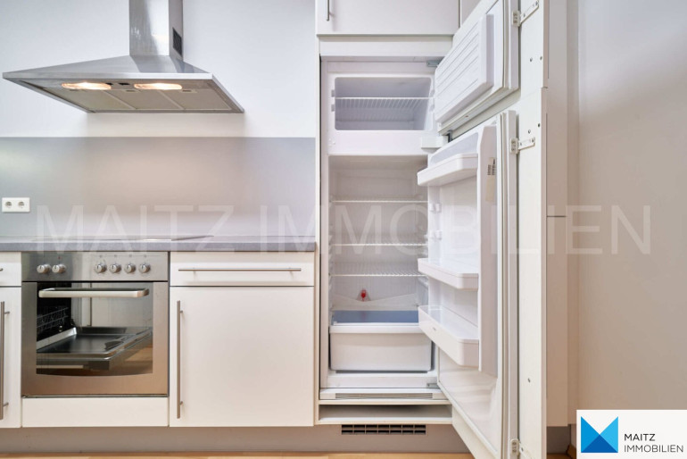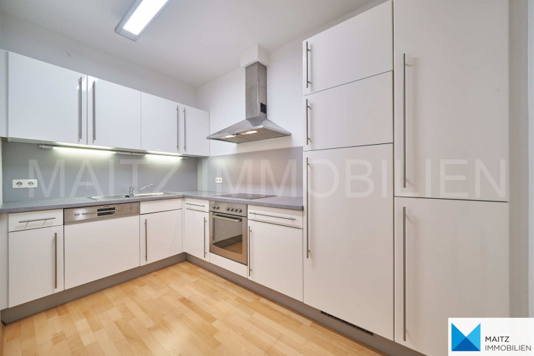 + Küche (Ober-/Unterschränke, Vorratsschrank, Spüle mit Abtropftasse, Geschirrspüler, Herd/Backofen, Kühl-/Gefrierkombination, Dunstabzug)