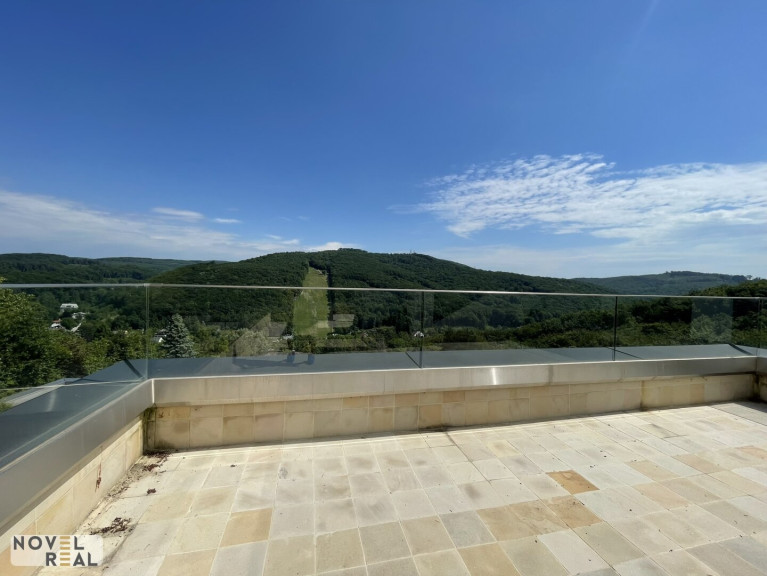 - Edelstahl-Glasgeländer auf allen Balkonen und Terrassen, ergänzt durch eine stilvolle Treppe mit Edelstahl-Handlauf.