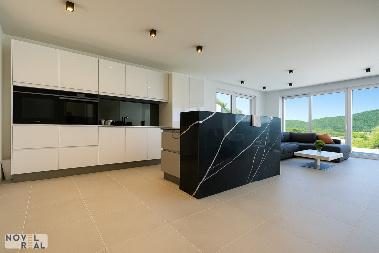 - Wohnküche (42,83 m²): Der zentrale Treffpunkt des Hauses – großzügig, hell und modern.
