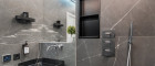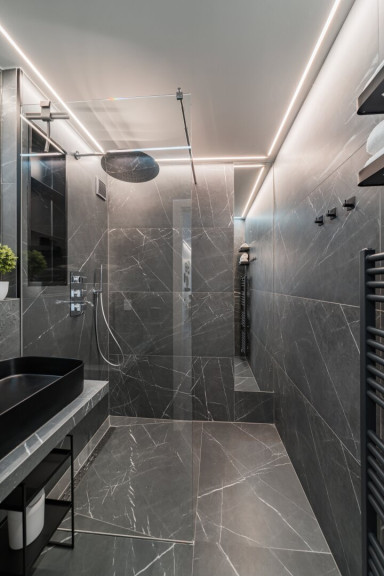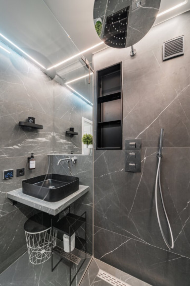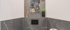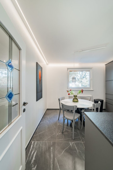 • Italienischer Feinsteinzeug-Steinboden: Elegante und pflegeleichte Steinfliesen in Vorzimmer, Küche, Badezimmer und WC – ein luxuriöses und modernes Wohngefühl.
