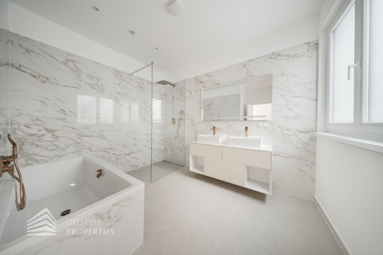 Diese Wohnung glänzt durch eine erstklassige Ausstattung, welche den anspruchsvollen Lebensstil seiner Bewohner hervorhebt. Vom edlen Fußboden im französischen Fischgrät-Muster über Stiltüren "Alt-Wien" bis hin zu luxuriösen Bädern, lässt sie keine Wünsche offen.