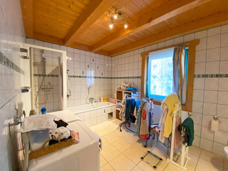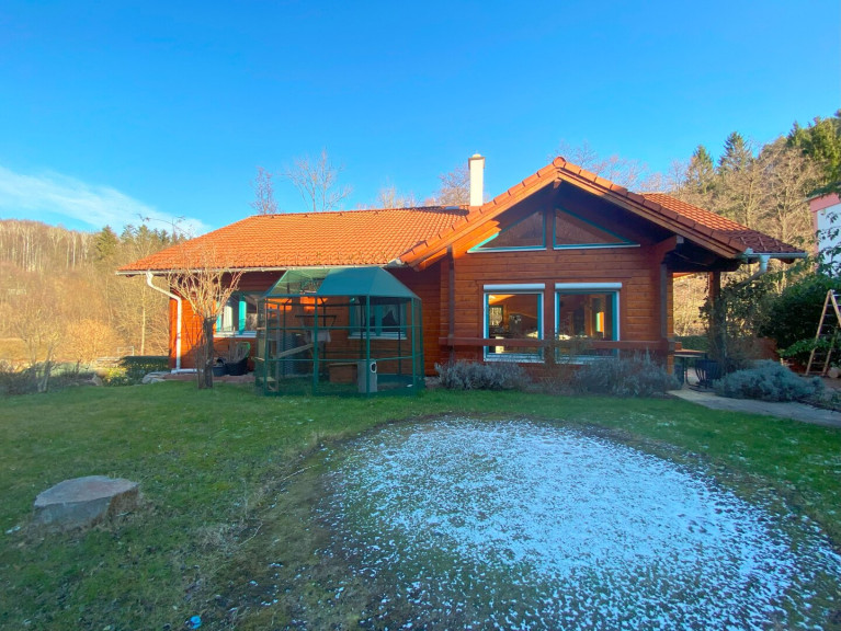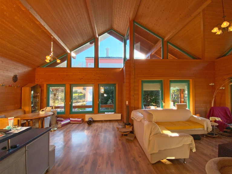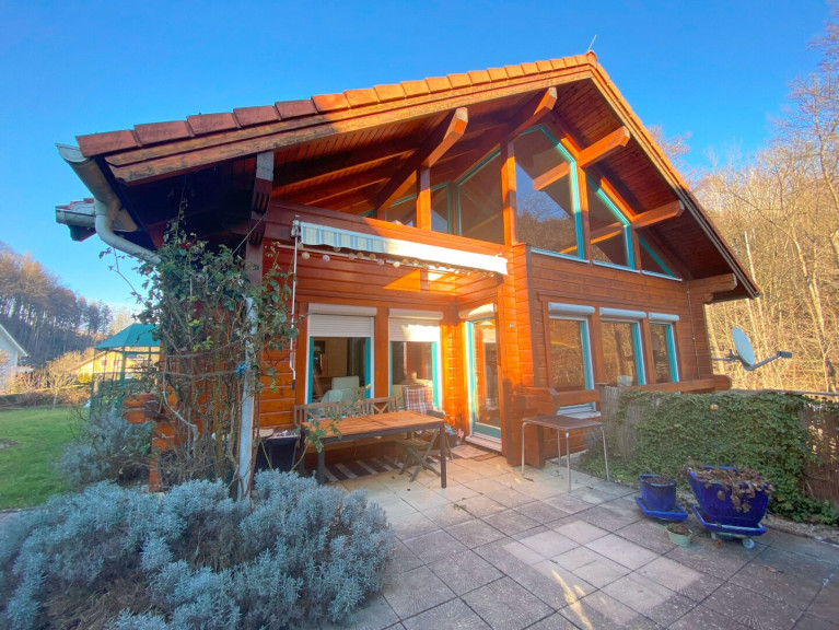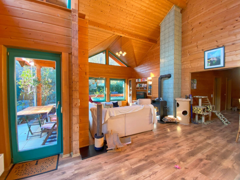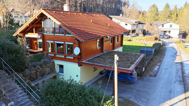 Diese nahezu rechteckige, nach Ost-West ausgerichtete Liegenschaft befindet sich in einer ruhigen Sackgasse, direkt am Waldrand gelegen, nur etwa 1 km vom Pressbaumer Zentrum entfernt. Das gemütliche Einfamilienhaus wurde ca. im Jahre 2002 in Holzblockbauweise mit Wärmedämmung errichtet.