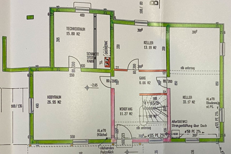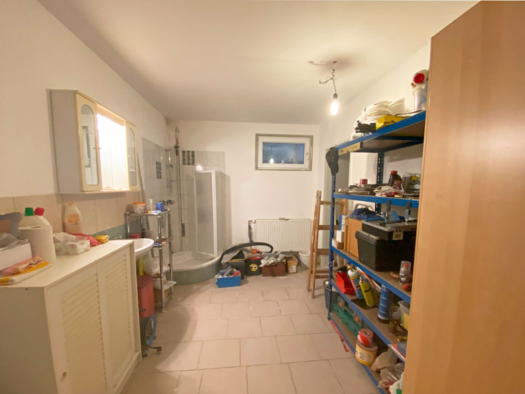 Trockenen Fußes gelangt man vom Carport direkt in den Windfang des Untergeschoßes. Auf dieser Ebene stehen noch zwei Kellerräume, ein Hobbyraum und ein Technikraum zur Verfügung. Im größeren der beiden Kellerräume sind Küchenanschlüsse vorhanden.