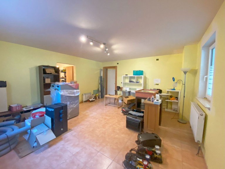 Vom Windfang gelangt man über die Stiege in die Diele im Erdgeschoß, von der man zentral alle drei Zimmer erreicht. Weiters werden auf dieser Ebene ein großes Badezimmer, separates WC und Schrankraum geboten. Die lichtdurchflutete Wohnküche ist mit einer Küche inkl. Einbaugeräten und einem Schwedenofen ausgestattet. Von hier aus gelangt man zur nach Süden ausgerichteten Terrasse mit Markise und in den ebenen, westseitigen Garten.