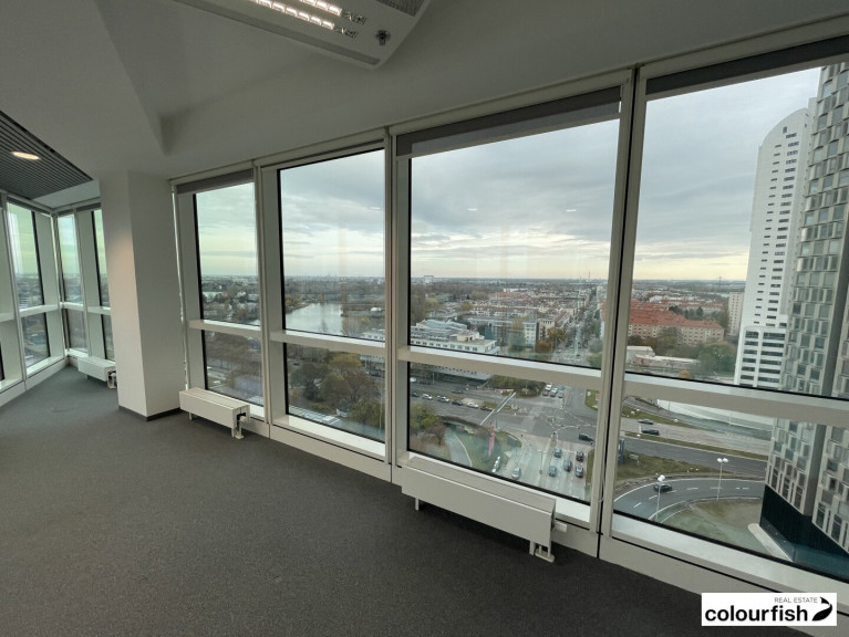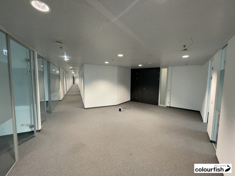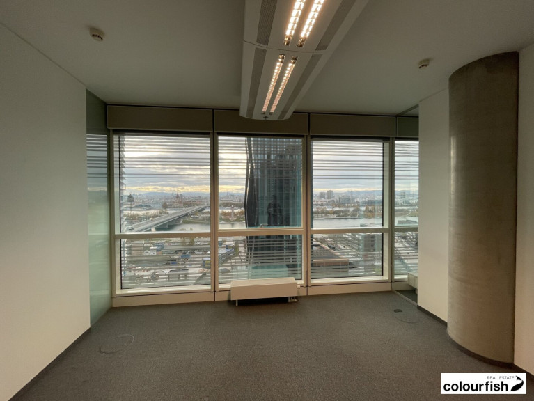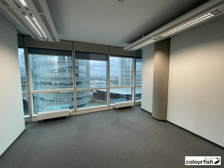 Derzeit ist noch keine LED-Beleuchtung in der Einheit. Dies wird jedoch vor Einzug eines neuen Mieters umgerüstet. Die Loggia (ca. 15 m²) ist eine absolute Besonderheit, da es sich um die einzige Außenfläche im Tech Gate handelt. Der Ausblick aus dem 14. Stockwerk ist hervorragend.